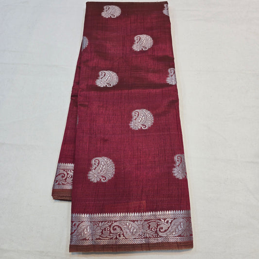 Deep Red Color Saree with Silver Butta & Striped Pallu