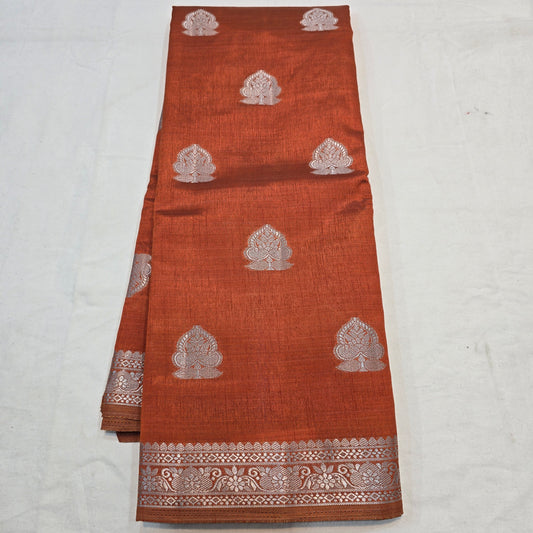 Bricks Color Saree with Silver Butta & Striped Pallu