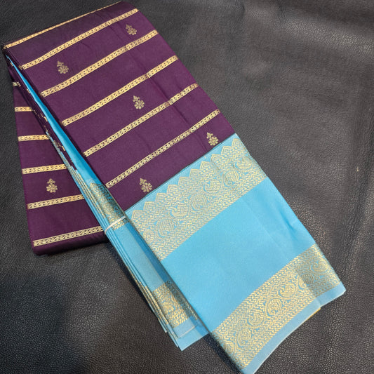 10 Yards Saree – Purple & Olive Green Contrast Zari Border Traditional Madisar Saree