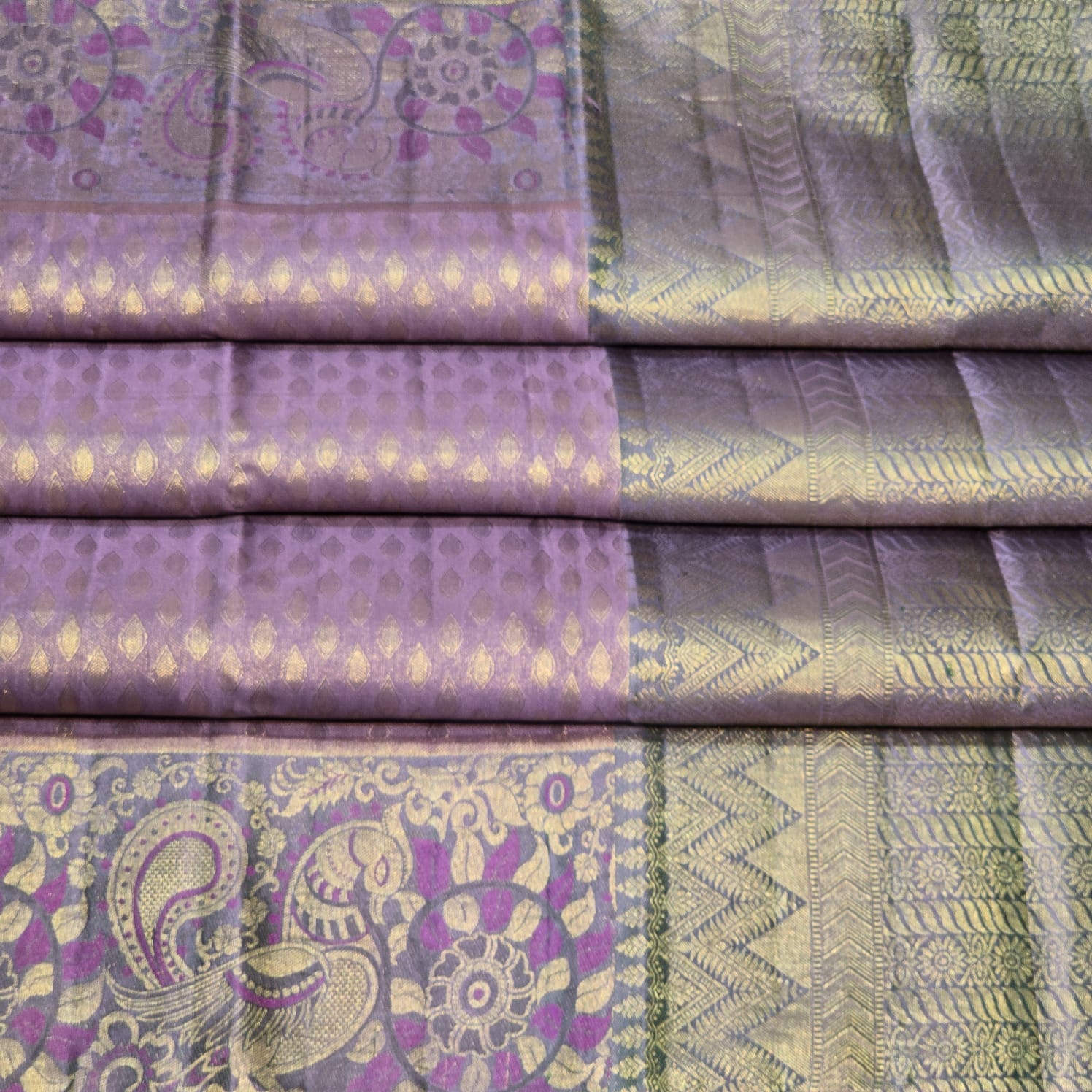Royal Lavender & Gold Zari Woven Kanchipuram Silk Saree with Peacock Border